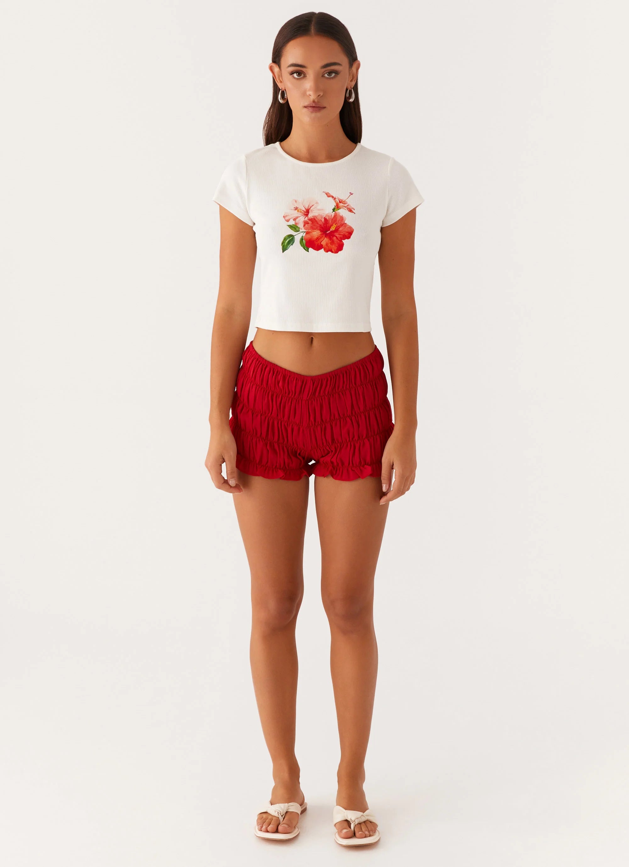 The Classic Graphic Baby Tee features a rounded neckline and showcases an exclusive Iris Petal print that captures your playful spirit. This fitted staple is perfect for layering or wearing solo, making it a go-to for any occasion. Elevate your casual look with a piece that embodies effortless style and fun.