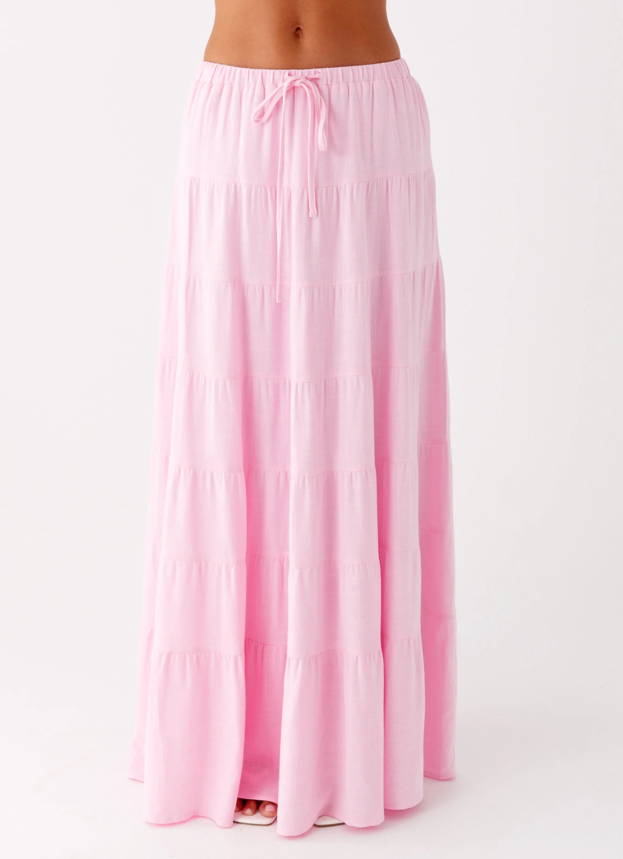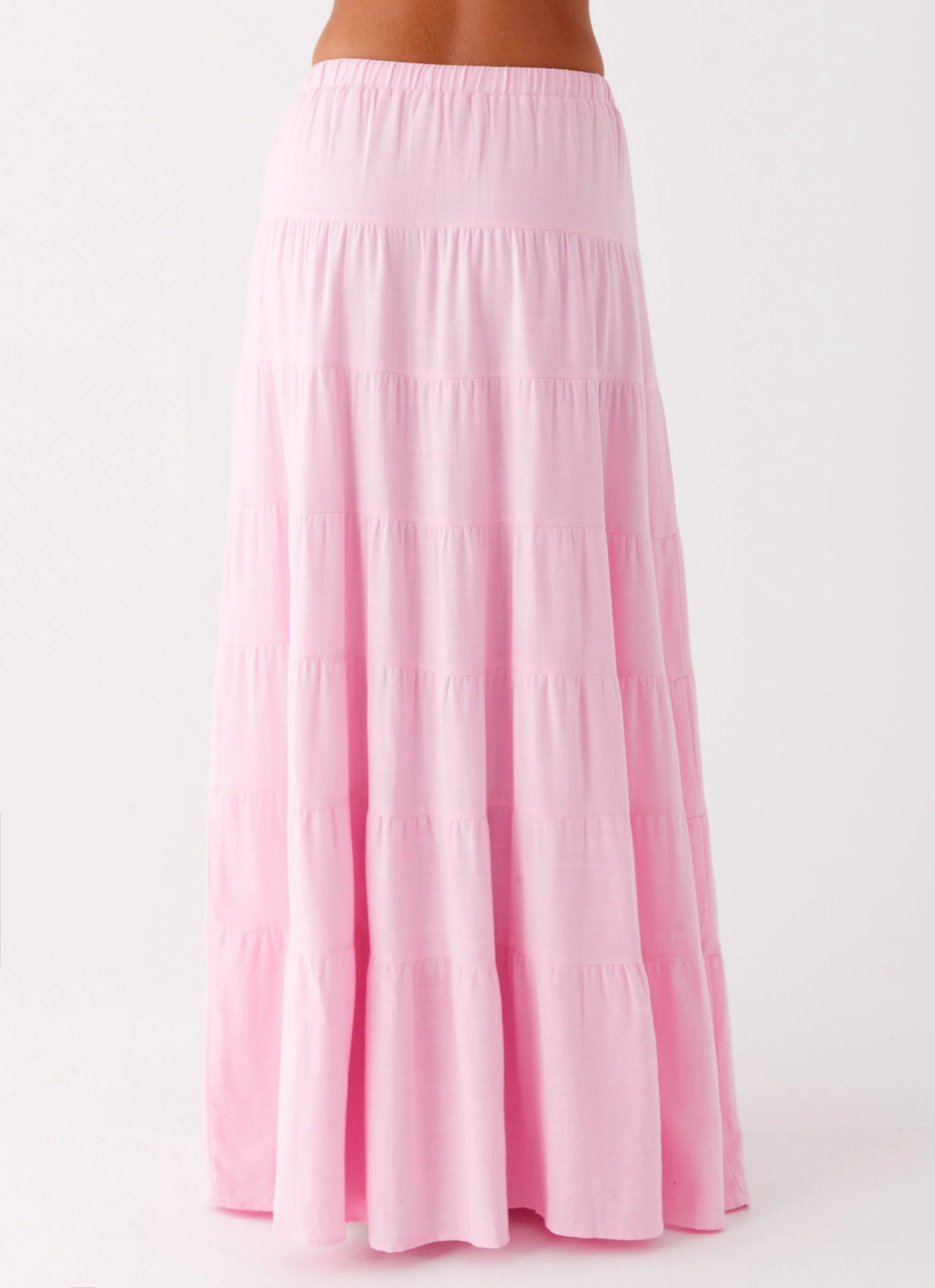 The Mariella Linen Maxi Skirt exudes effortless sophistication with its A-line fit and delicate smocked detailing. Designed for comfort and flow, this skirt drapes beautifully, offering a relaxed yet chic silhouette.