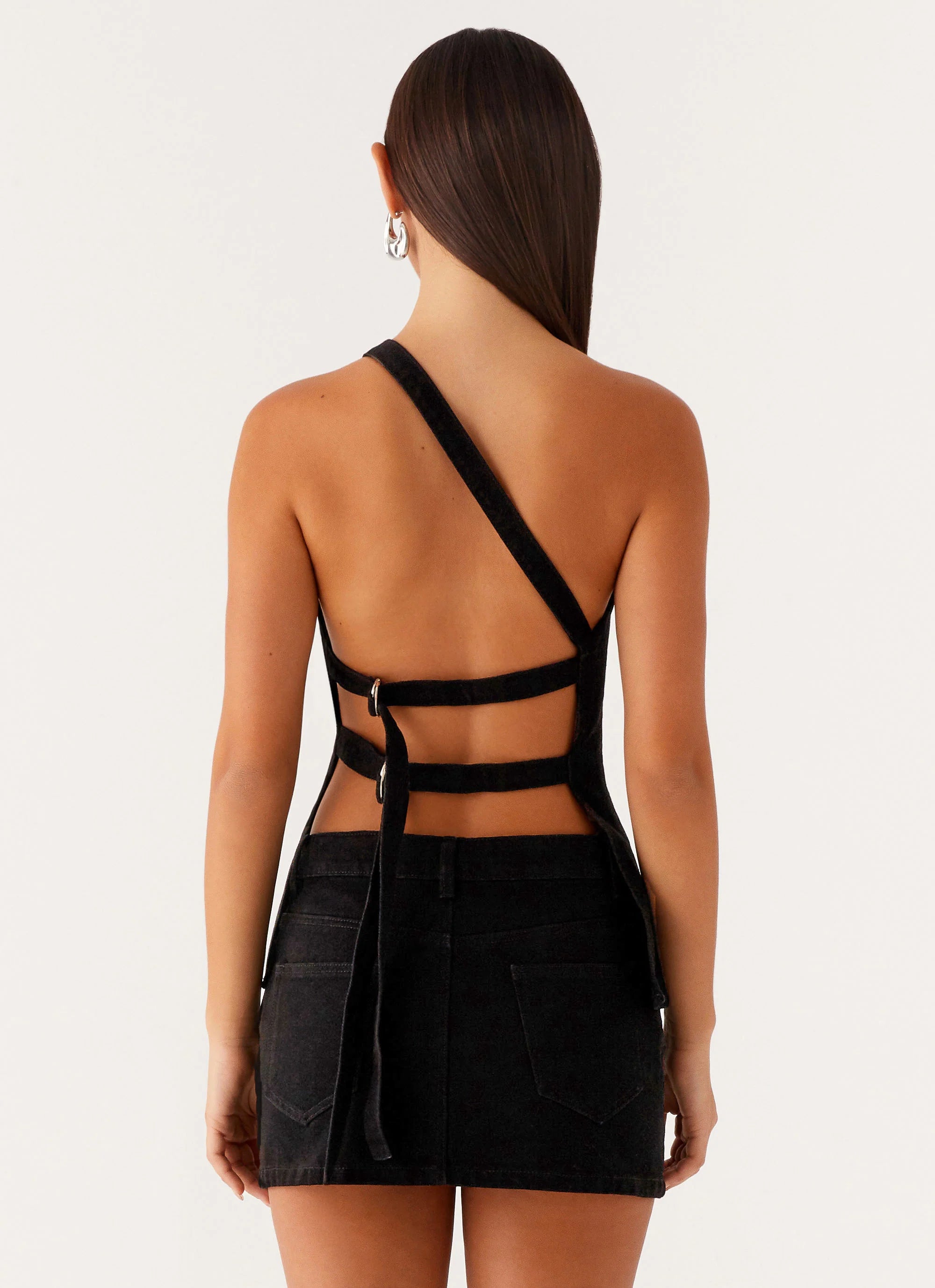 Maysa Denim Top – Bold and edgy with a hint of sophistication. The one-shoulder neckline creates a striking silhouette, while the buckle detail adds a touch of modern flair. Unlined for a lightweight feel, this top is perfect for making a statement on any night out.